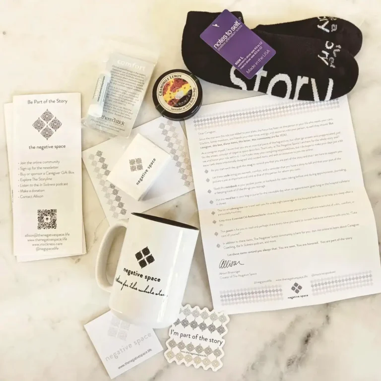 Want to support a caregiver, but aren’t sure if they would like a gift box? Show them you see and honor their role by making a tax-deductible gift in any amount to The Negative Space, so that they and other caregivers can continue to receive support at little to no cost.